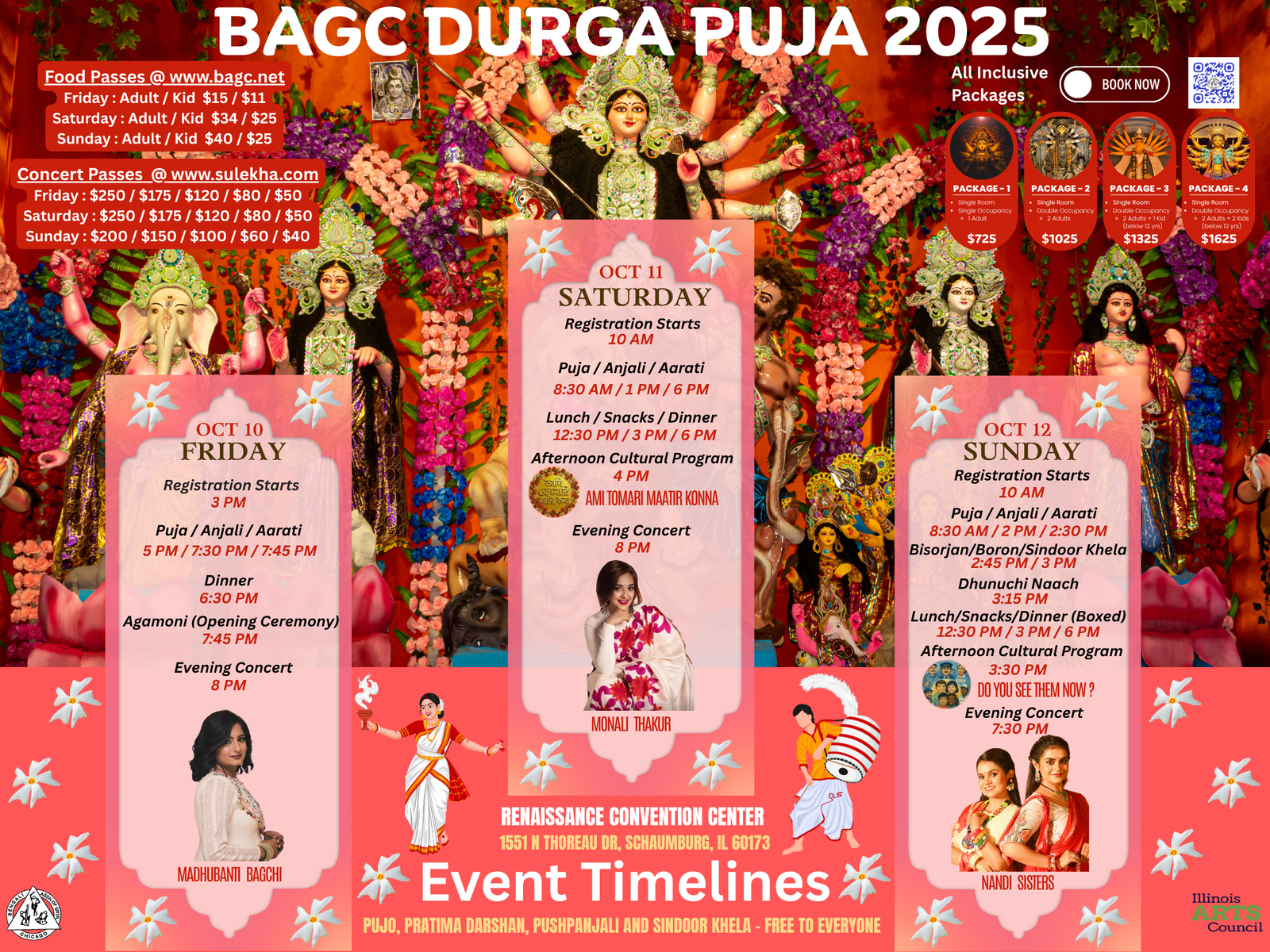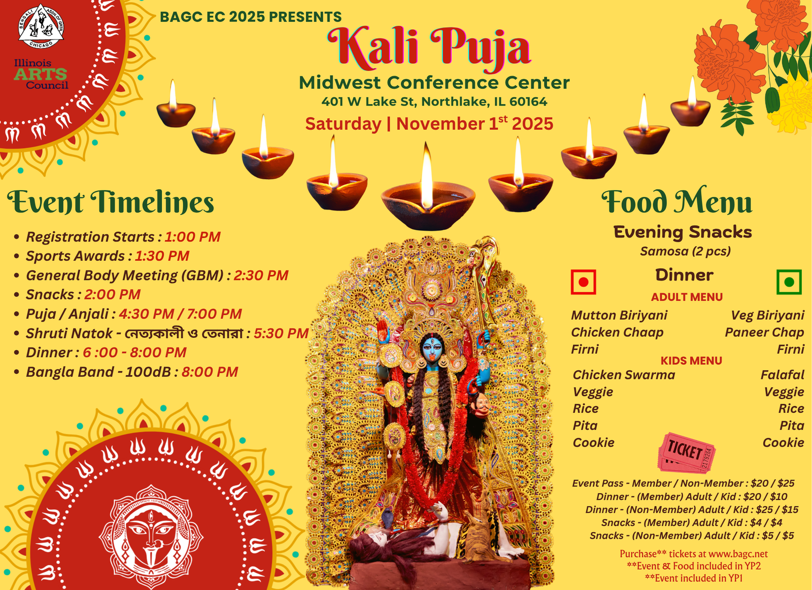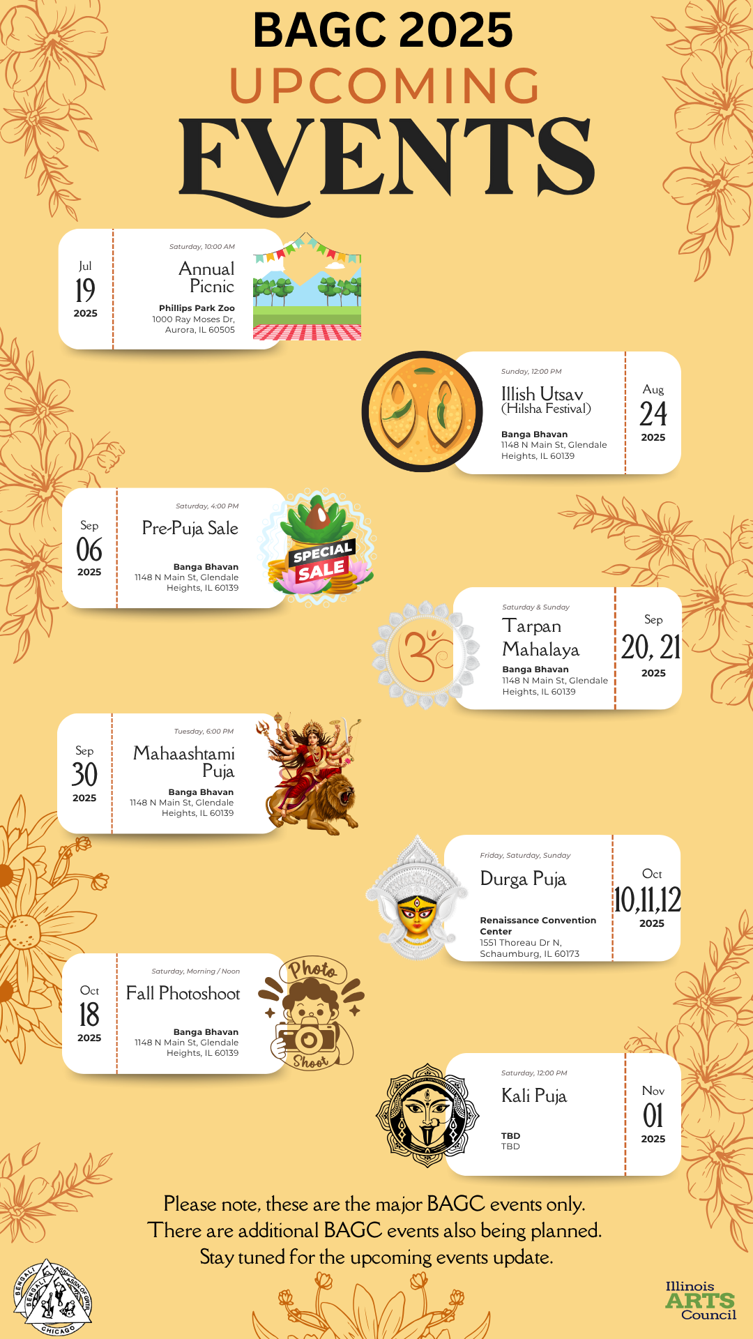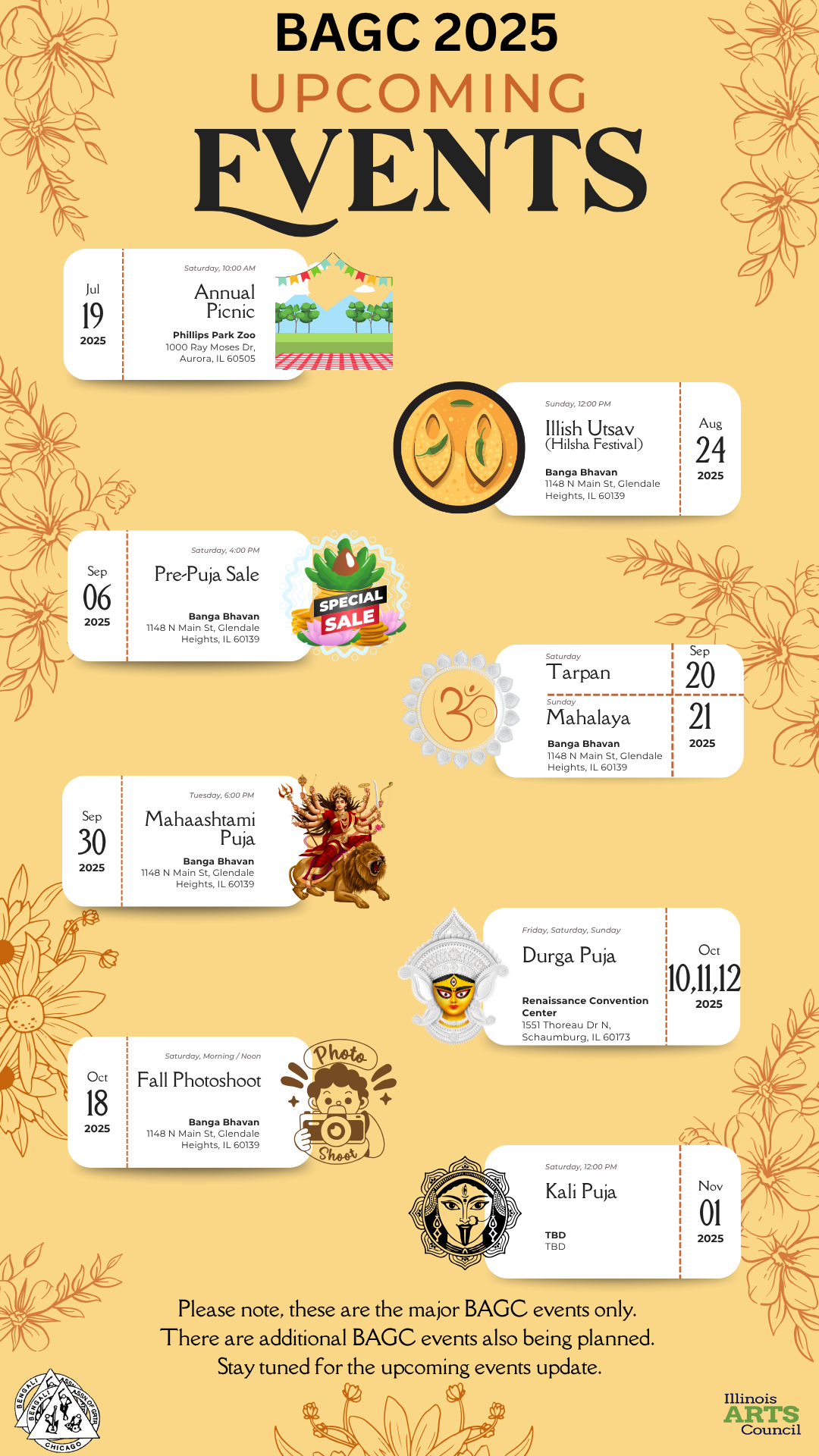 Bengali Association of Greater Chicago (BAGC) is a non-profit organization dedicated to preserving and promoting literature, art, music and the rich religious and cultural heritage of South Asian Indian community.Since the year 1976, through its many social and philanthropic pursuits, BAGC has nurtured the soul of the immigrant Bengali community. Banga Bhavan, located centrally in Chicago land is the bustling hub of all activities connecting the people of Chicago with the essence of Bengal.