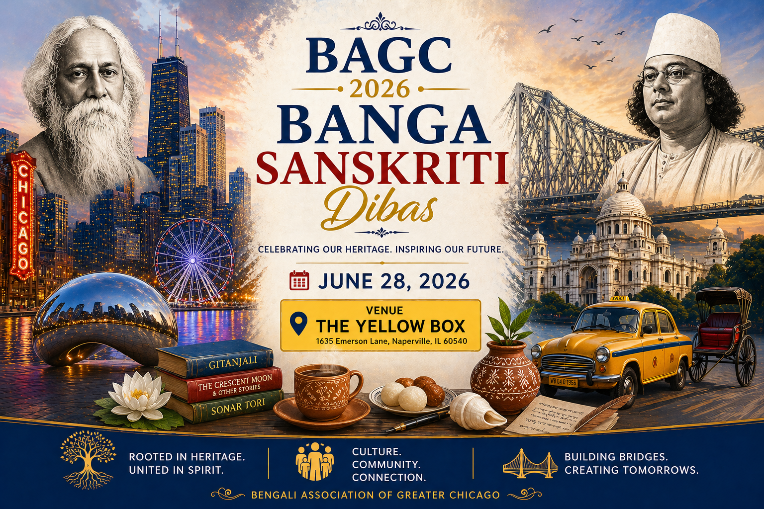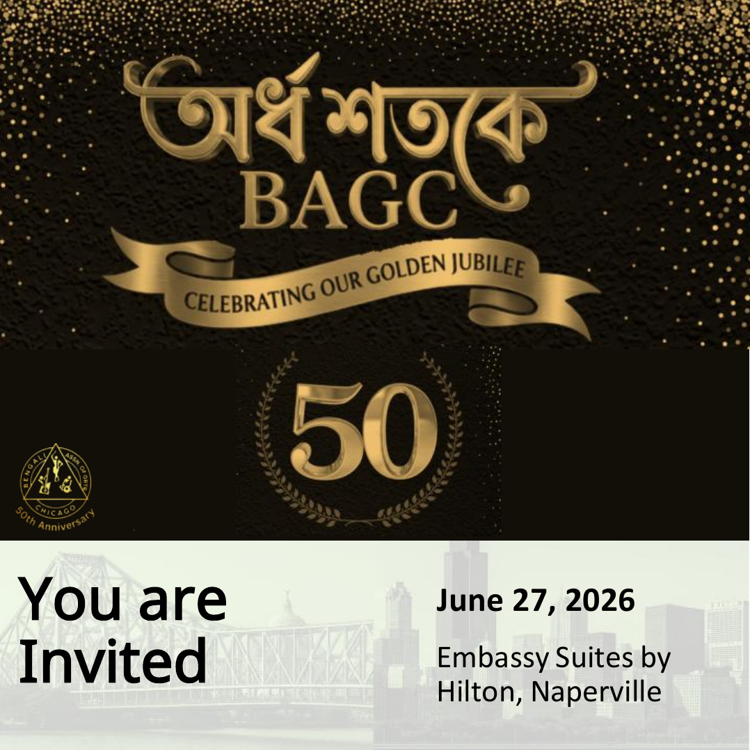 Bengali Association of Greater Chicago (BAGC) is a non-profit organization dedicated to preserving and promoting literature, art, music and the rich religious and cultural heritage of South Asian Indian community.Since the year 1976, through its many social and philanthropic pursuits, BAGC has nurtured the soul of the immigrant Bengali community. Banga Bhavan, located centrally in Chicago land is the bustling hub of all activities connecting the people of Chicago with the essence of Bengal.